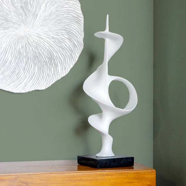 Movement, feeling, emotion and elegance are all wrapped into our Tendril Sculptures (two sizes available). Each contemporary organic form is handcrafted of resin with a satin white finish. Group the two sizes together for a spectacular ‘dance performance’. The sculpture ships separate from the resin base, assembly required. Indoor only.