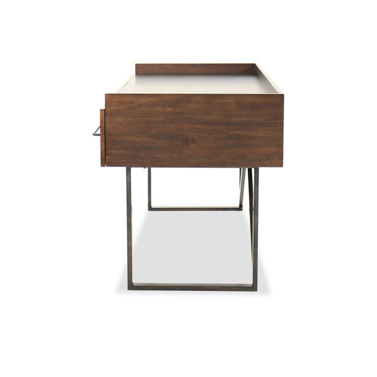 Upgrade your home or officeDecor with this writing desk, made from acacia veneers and engineered wood. It features walnut brown finished top and black finish tubular metal legs for an appealing look as well to have good support base. The smooth top of the desk is ideal to display picture frames or table accent items. It also has three spacious drawers for storing all your office supplies and keep the top clutter free. It can be used as a writing or working desk for your home office.