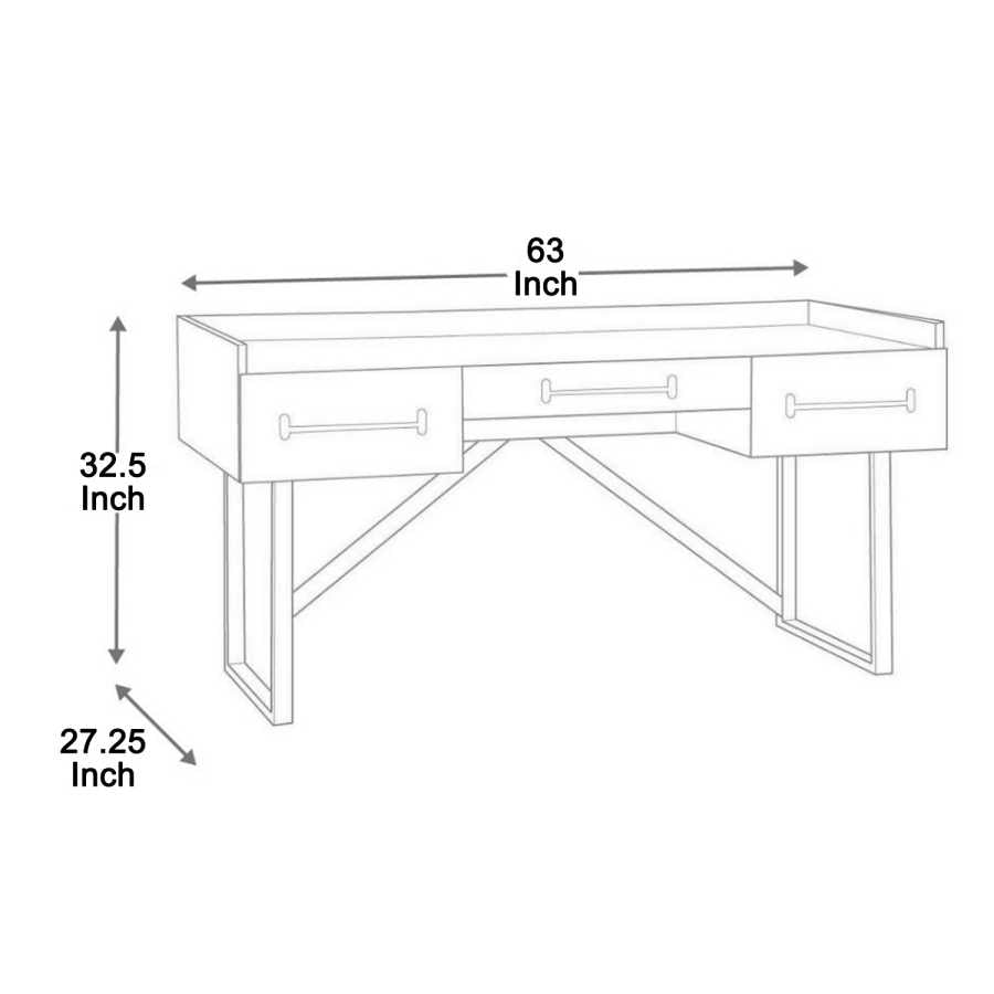 Three Drawers Wooden Desk With Tubular Metal Base And Bar Handles, Brown And Black By Benzara