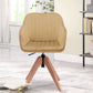 Bring this comfortable tufted champagne and natural upholstered velvet dining arm chair to your table to enjoy long lasting quality time with your family and friends. The addition of a vertical channel tufted design gives this chair some extra special flair. The solid back gives this chair its unique style. A swivel feature allows this chair to turn, adding versatility to your seating. Dining chairs are a great way to compliment your kitchen or dining room but can also be used in the foyer, hallway, or any room you might need extra seating. 34.84-inch H x 16.53-inch W x 16.53-inch D