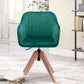 Make your dining experience the best with this tufted green and natural velvet and wood dining arm chair. The addition of a channel tufted design gives this chair some extra special flair. Complete with solid back, this chair not only looks good but is comfortable. A swivel feature allows this chair to turn, adding versatility to your seating. Dining chairs are a great way to compliment your kitchen or dining room but can also be used in the foyer, hallway, or any room you might need extra seating. 34.84-inch H x 16.53-inch W x 16.53-inch D
