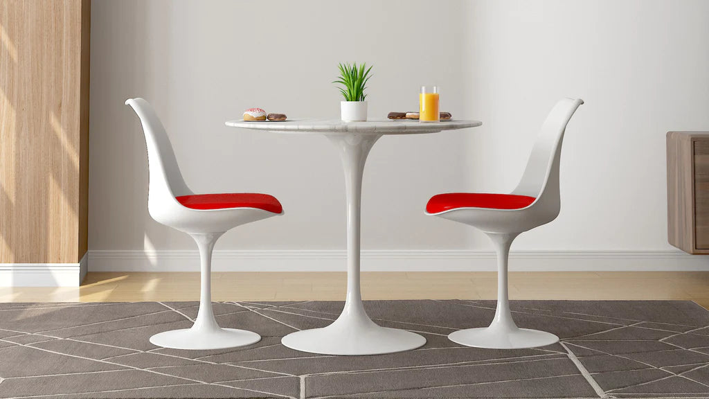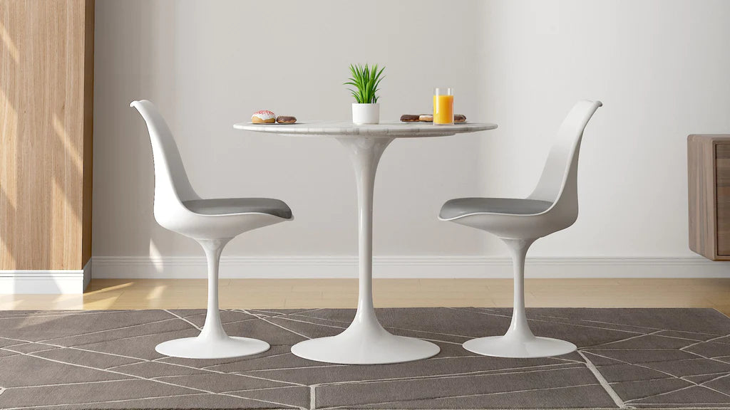 Tulip 32" Marble Dining Table & Chairs Set 3pc By Modholic