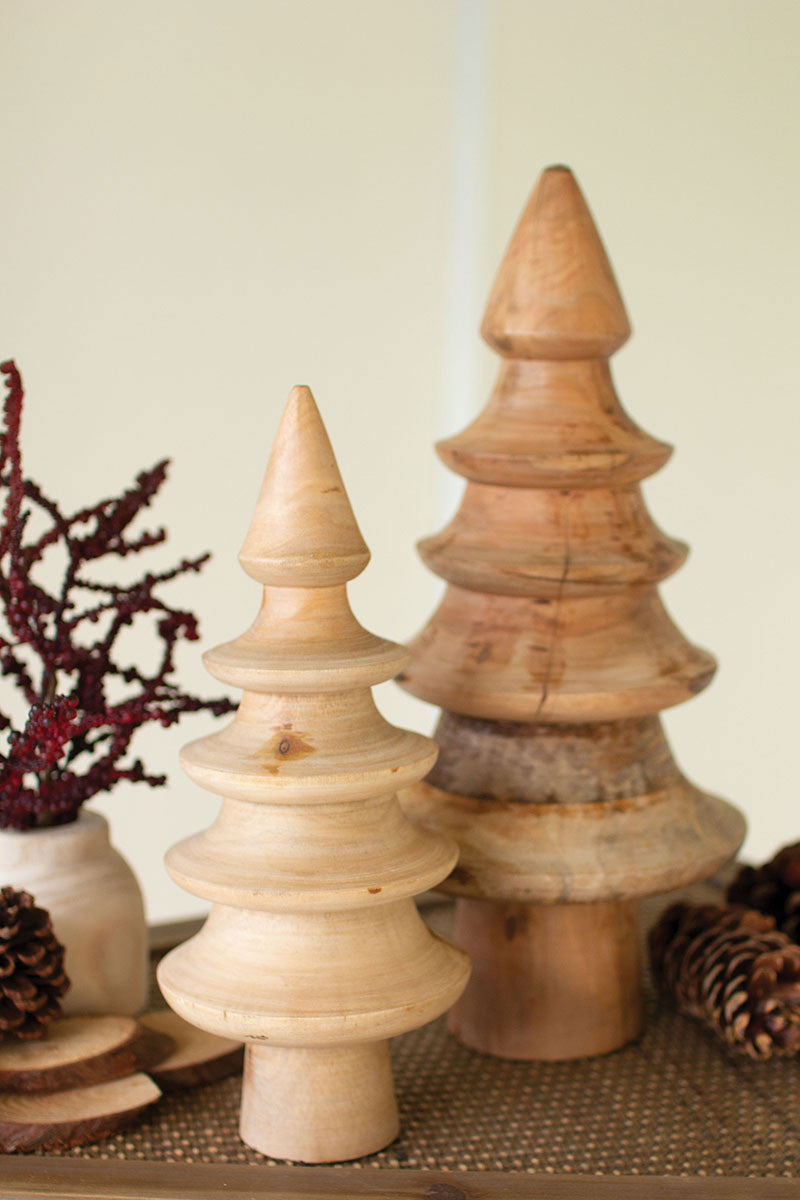 Turned Mango Wood Christmas Trees S/2 By Kalalou