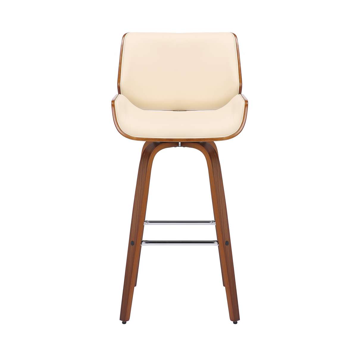 Tyler 30" Bar Height Swivel Cream Faux Leather and Walnut Wood Bar Stool By Armen Living