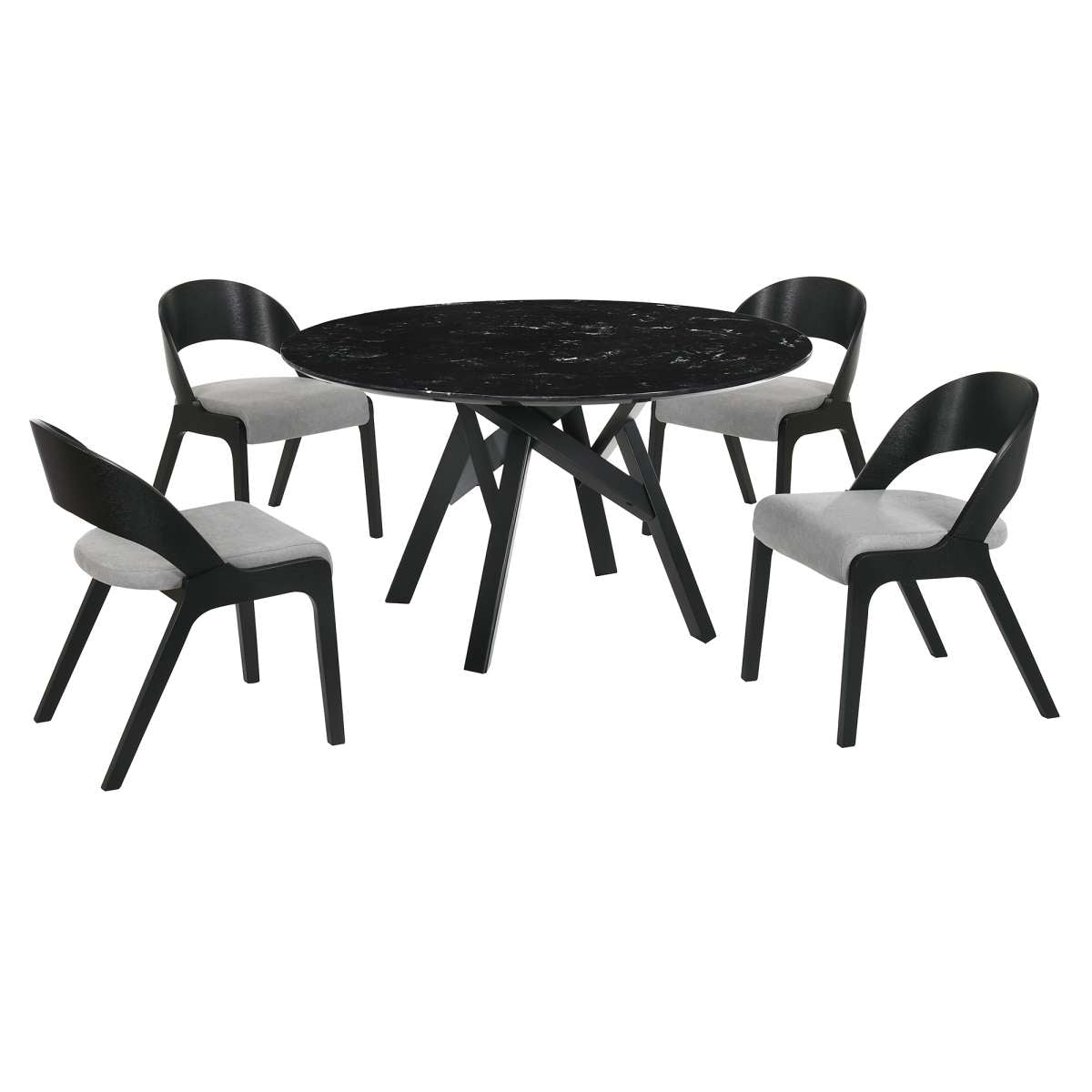Venus and Polly 5 Piece Black Marble Round Dining Set By Armen Living