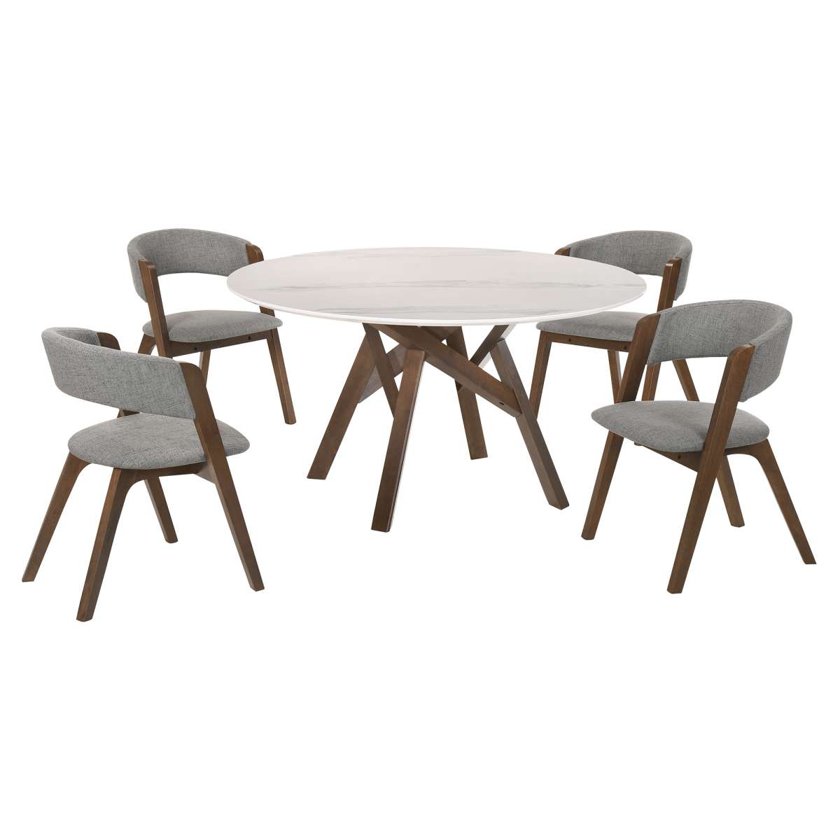 Venus and Rowan 5 Piece Walnut and Marble Round Dining Set By Armen Living