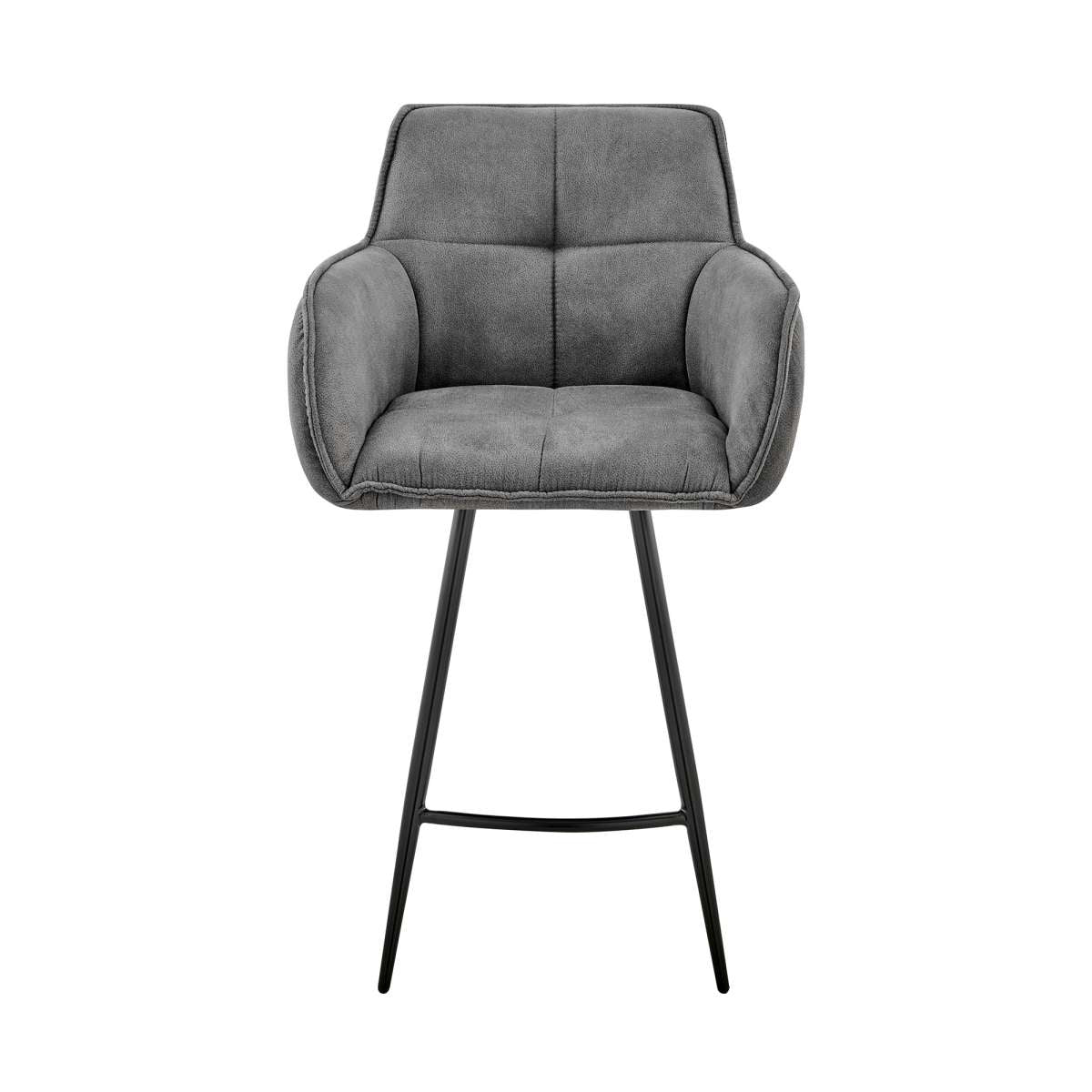 The Verona 26" Counter Height Bar Stool in Charcoal Fabric and Black Finish from Armen Living is a necessity for any modern or contemporary household. Featuring a wide back and spacious seat, the foam-padded cushion creates wonderful a seating experience - keeping you comfortable and relaxed all day long. This amazing barstool features a strong metal frame that assures longevity and will give you years of enjoyment. The clean geometric upholstered lines add a textured look to this stool, covering the ultra-comfortable foam-padded cushion. The Verona Stools easily pull up to any bar or pub table, kitchen island or peninsula. Available in your choice of 26" counter height and 30" bar height.