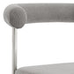 | COLOR OPTIONS - Available in your choice of Gold Brushed Stainless Steel with Taupe Fabric / Brushed Stainless Steel with Light Gray, Charcoal, and Blue Fabric / Matte Black Iron with Thundercloud Gray, Black, and Cream Fabric, or Gray Faux Leather. |