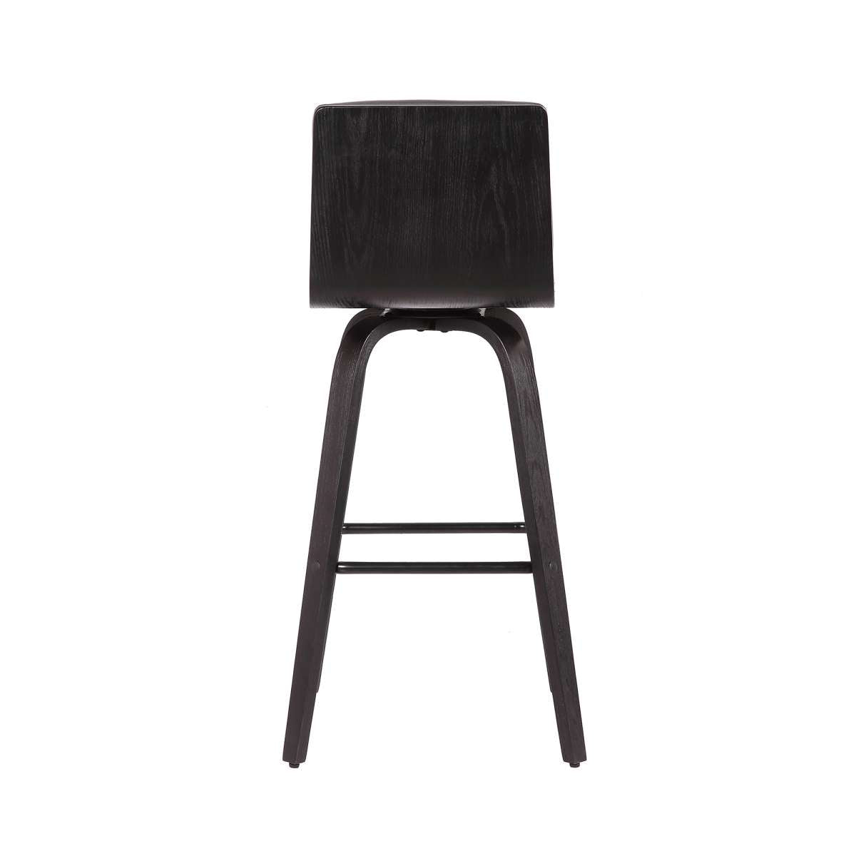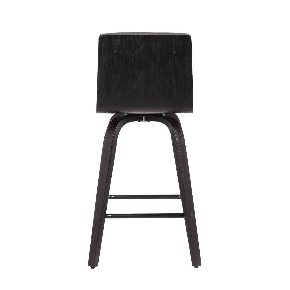 The Vienna 30" Swivel Grey Faux Leather and Black Wood Bar Stool by Armen Living provides both versatile style and comfort with a Mid-Century Modern design that can easily be integrated into your home's current décor. The 360-degree swivel function provides optimal mobility so you and your guests to stay engaged regardless of your place in the room at parties and gatherings. The Vienna’s frame is constructed of strong wood that is brilliantly accented by the plush high-density foam cushion that’s wrapped in faux leather upholstery. A square metal footrest is added for a chic and stylish aesthetic without comprising practicality and functionality of this item. The soft faux leather upholstery makes clean up a breeze, making this the perfect bar or counter stool for any entertaining home! With multiple bar seat height options and the armless design, you can easily pull the Vienna up to your kitchen island, peninsula counter, or home bar. The high seat back ergonomic properties to keep your back healthy and properly aligned. The Vienna is an ideal addition to any home or apartment and its quality materials ensure a comfortable seat for many years to come. The Vienna Bar or Counter Stool is available in 26” or 30” seat height and comes in your choice of a walnut wood finish with cream, grey, or brown faux leather or a black wood finish with grey faux leather.
