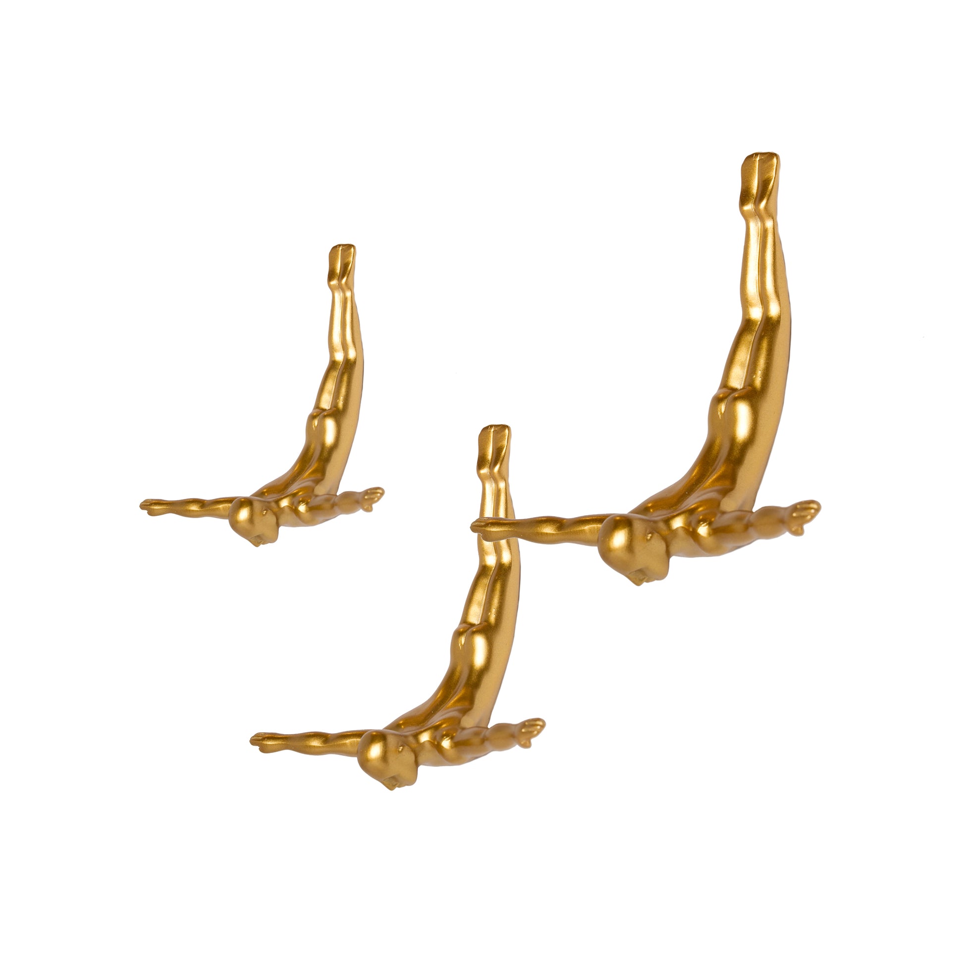 Elevate the originality of your decor with our unique Wall Diver art installation. This high-end wall sculpture creates the illusion of a man diving from any surface on which he is hung - a striking 3-dimensional addition to your home or office wall. Made from durable resin, Diving Man is an amazing conversation piece that looks great alone, or as a large grouping to make a bold design statement.