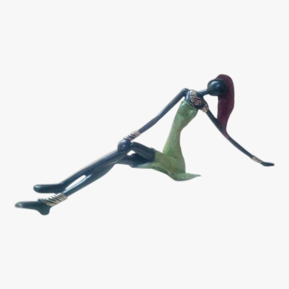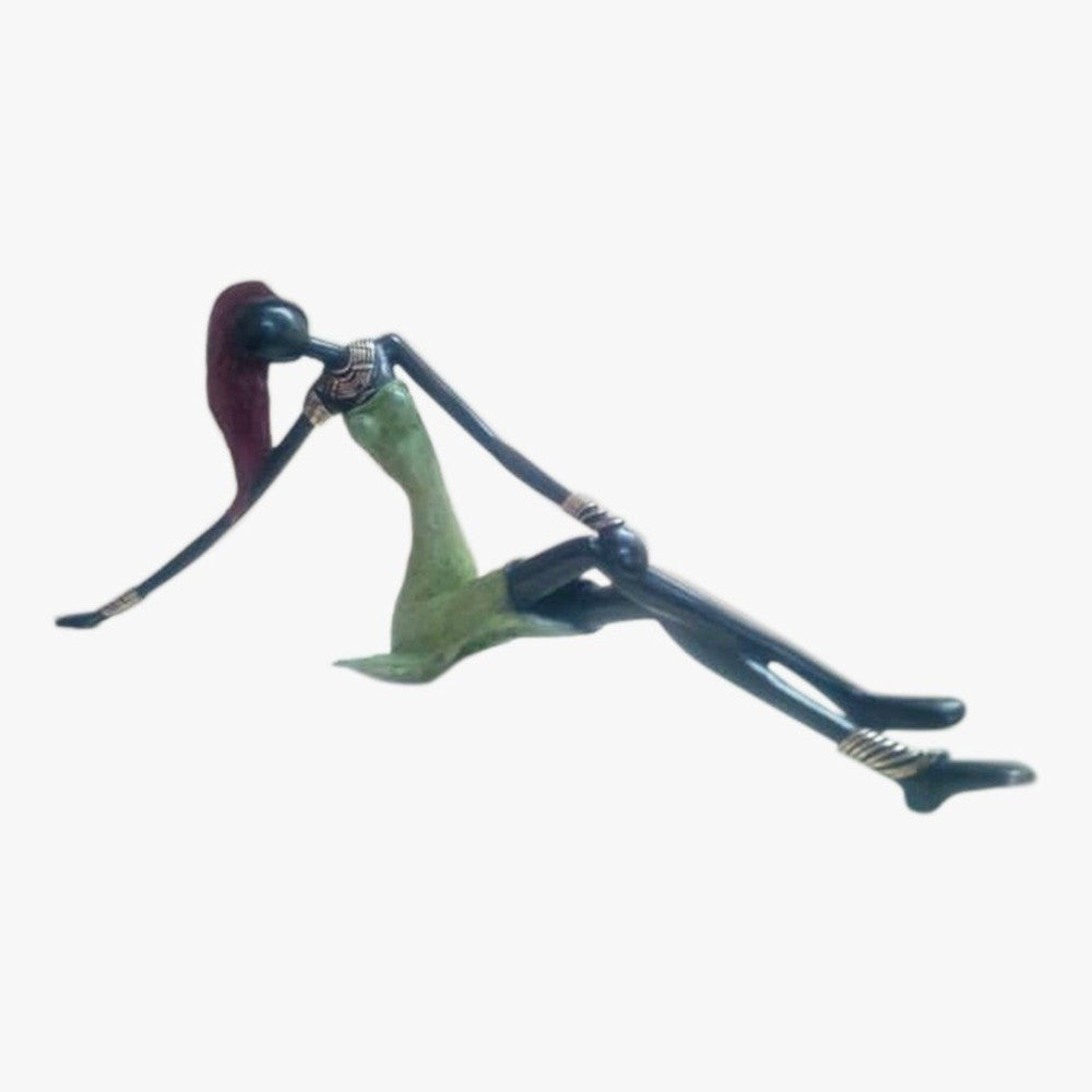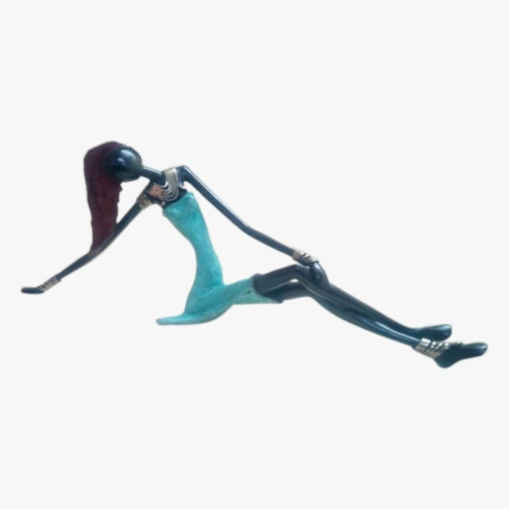 An exquisite vintage hand cast solid bronze exotic female statue of an African woman in a sky blue dress, This figurine is an unconventional representation of a modern African woman, showing elegance and style. It salutes the transforming spirit of Africa, focused on the development of women in all fields.