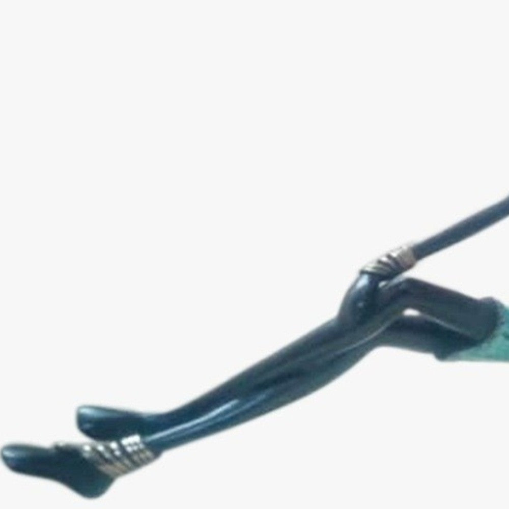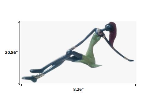 West African Vintage Hand Cast Bronze Female Figurine from Burkina Faso in Sky Blue Dress By Homeroots
