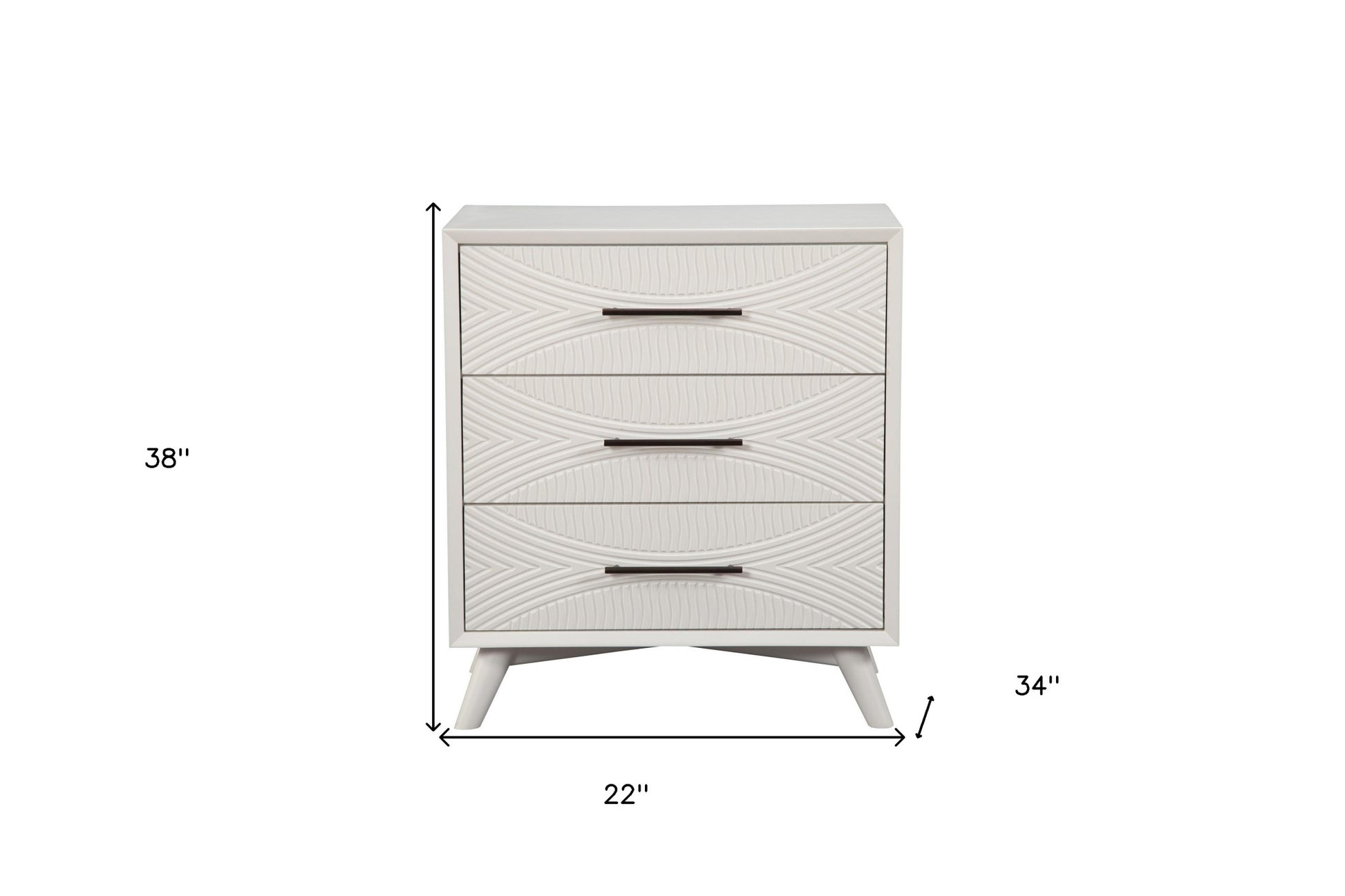 White Carved Geometric Solid Wood Three Drawer Dresser By Homeroots