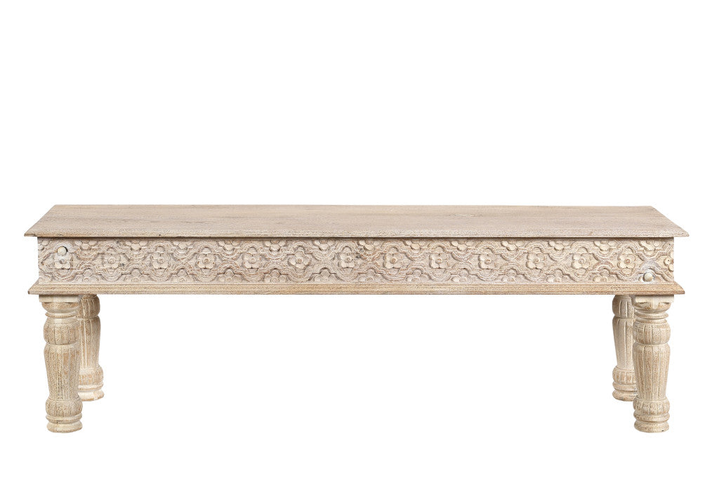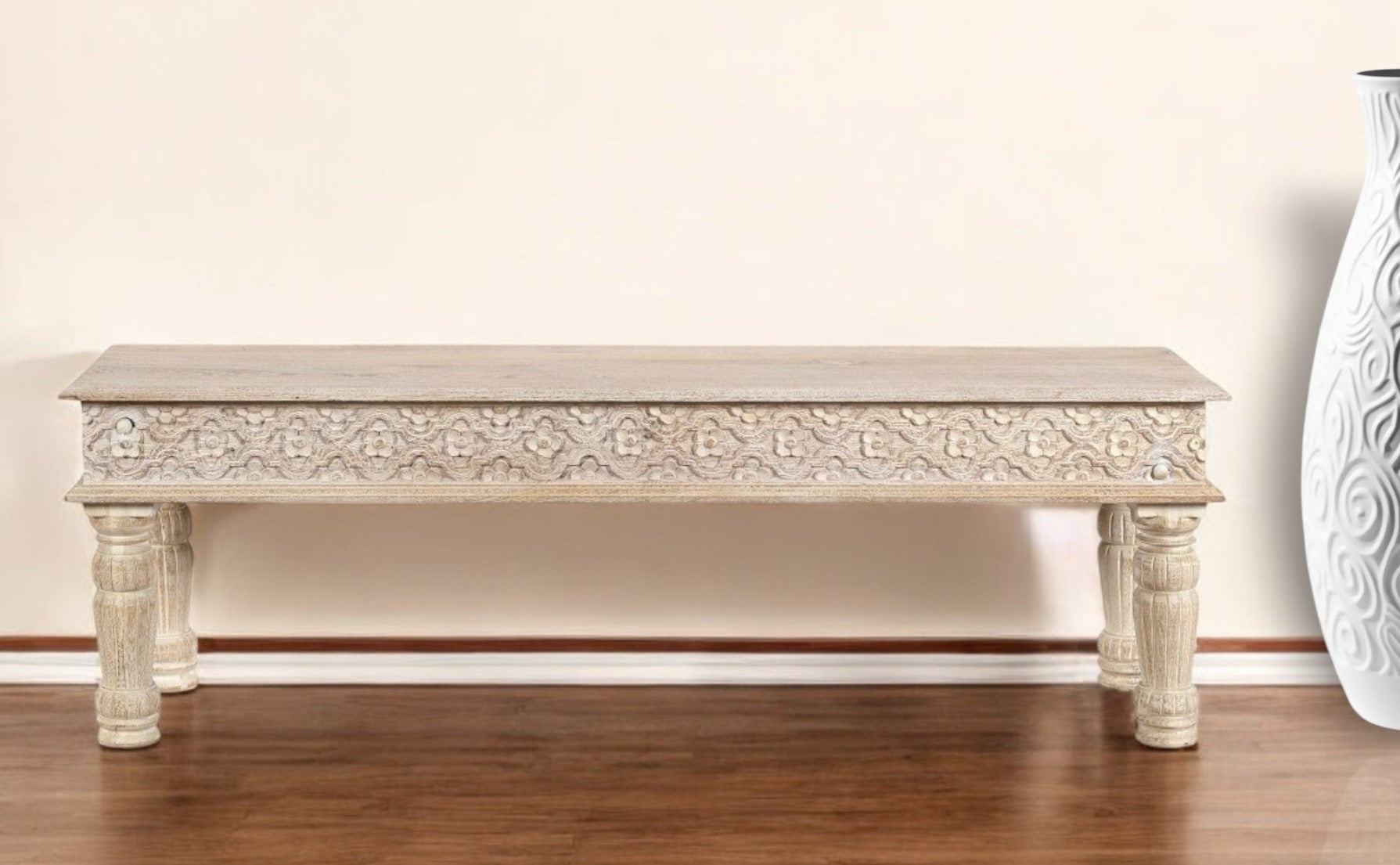White Floral Distressed Solid Wood Dining Bench By Homeroots