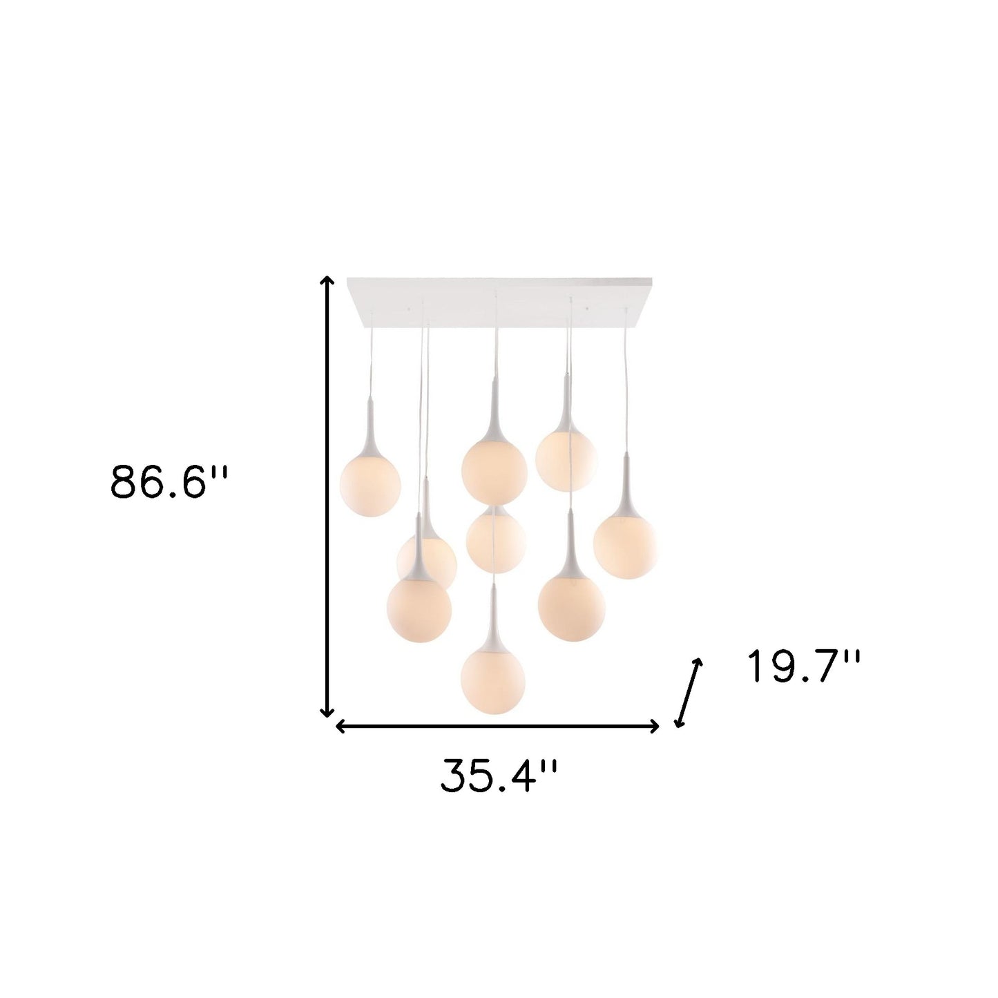 This beautiful white shaded nine light metal dimmable ceiling light will brighten up and change the look of your room. This light will require hardwiring installation. Featuring 3 distinct levels of light, this piece will bring a special glow to your room. This fabulous hanging light is a great way to add some design and brightness to any space in your home. 86.6-inch H x 35.4-inch W x 19.7-inch D