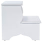 Practicality and fashion mix together with this handy 18-inch white wood step stool. This classic stool is multi-functional to be used as a step, a seat, or footstool. Crafted from high quality solid wood with veneers, the all over white coloration gives this piece a clean and chic appearance. A great addition to your space that add fashions and practical value. 15-inch H x 18-inch W x 16-inch D