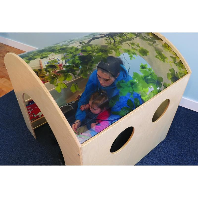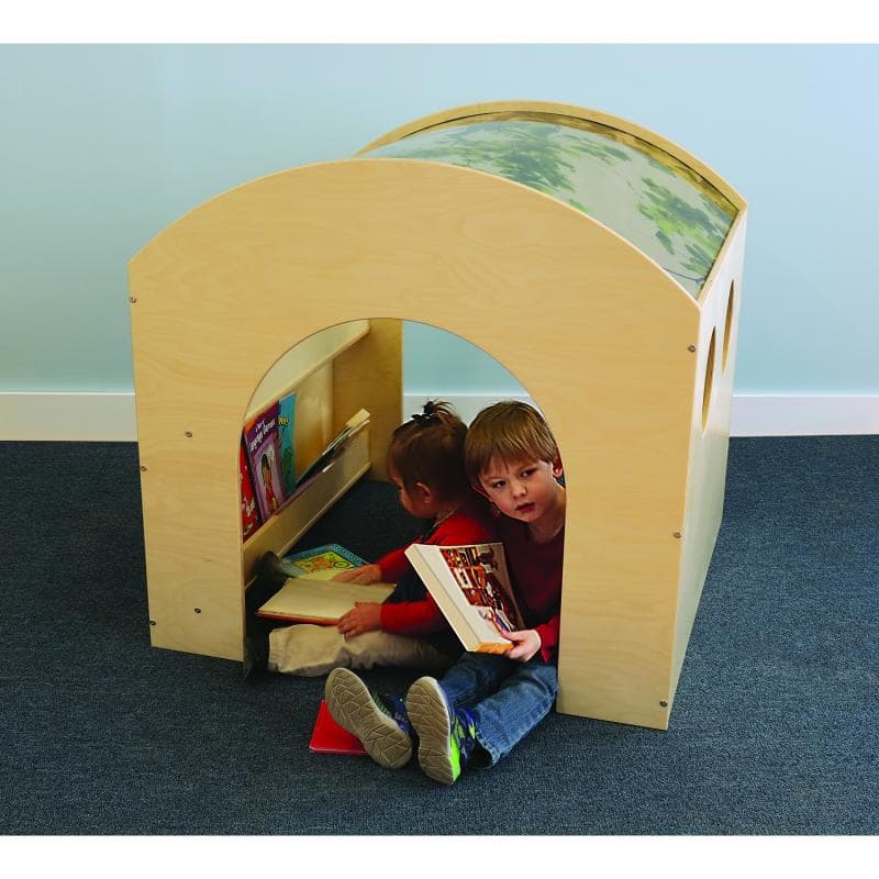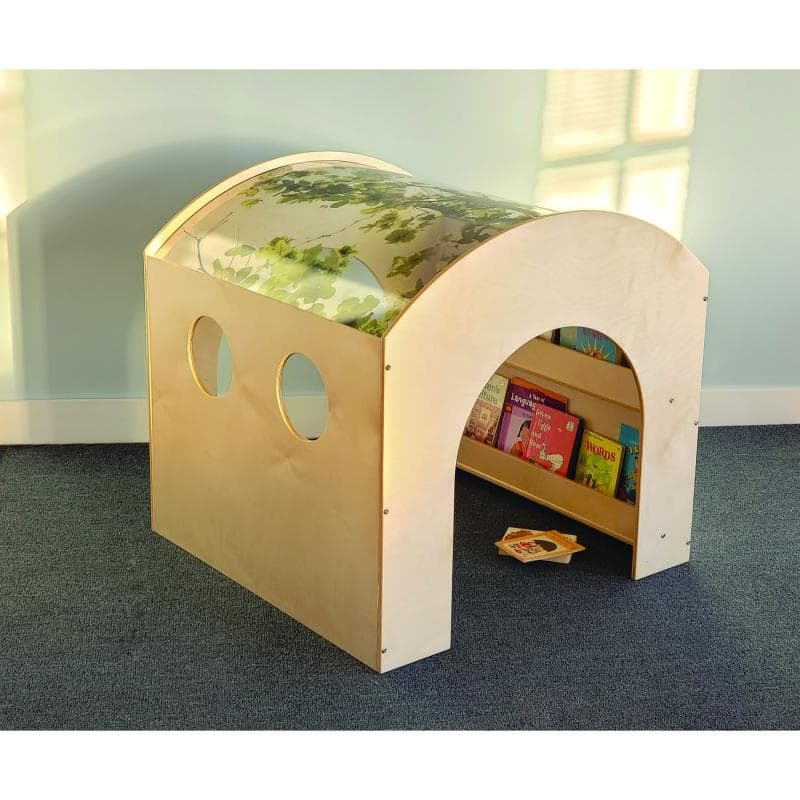 Another innovative Whitney Brothers® oasis for children! The biophilic design of this reading space features a unique curved acrylic roof imprinted with the realistic image of a spreading tree canopy that beckons children inside for a peaceful break yet provides easy visibility for adult supervision. The cozy interior features two built-in book display shelves on one side panel, viewing cutouts on the opposite panel and tunnel openings on each end panel that provide easy access and maximum visibility of children inside. Bring nature indoors and create a delightful quiet space that children will love!