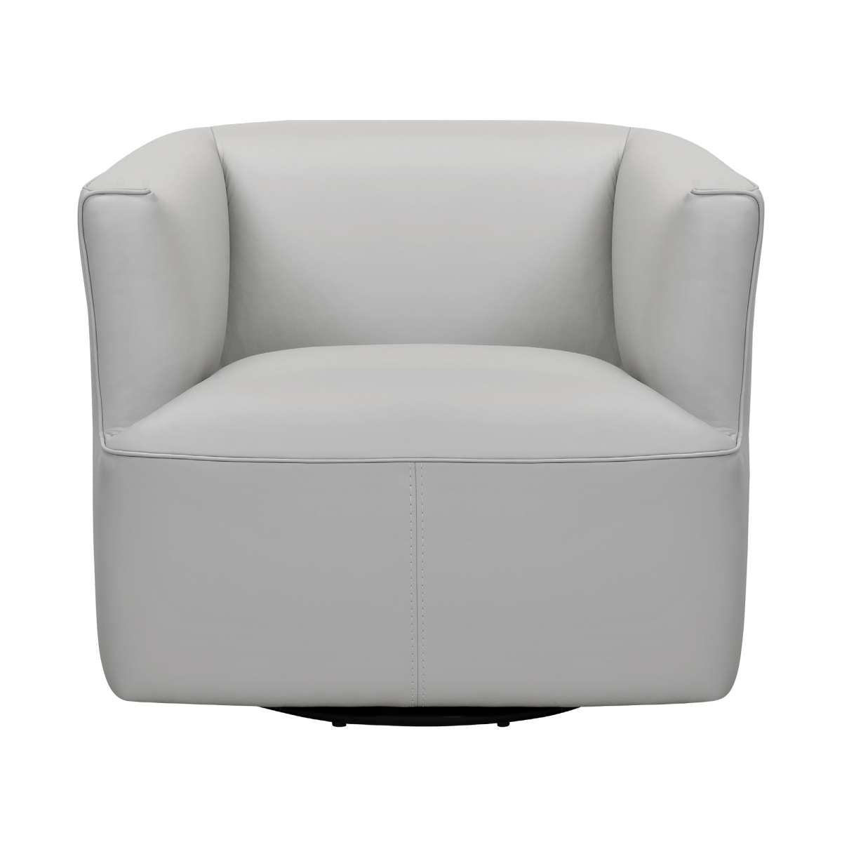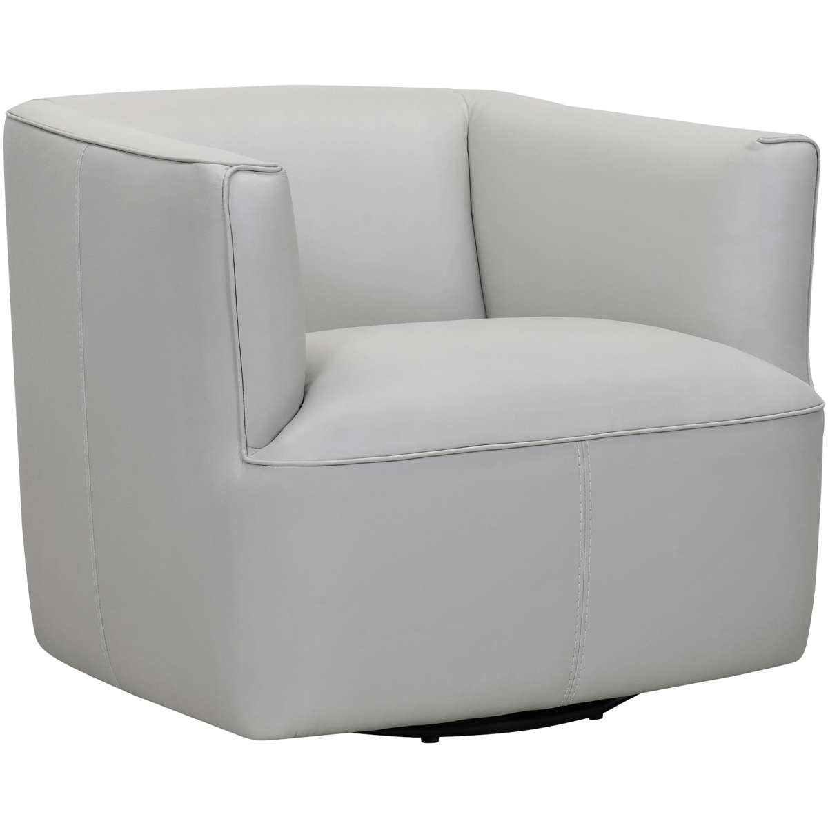 Whitney Swivel Dove Gray Genuine Leather Barrel Chair By Armen Living
