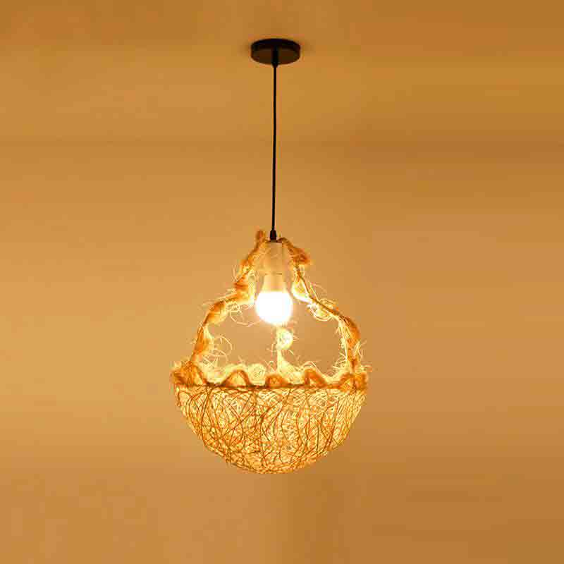 Wicker Rattan Flower Basket Shade Pendant Light.