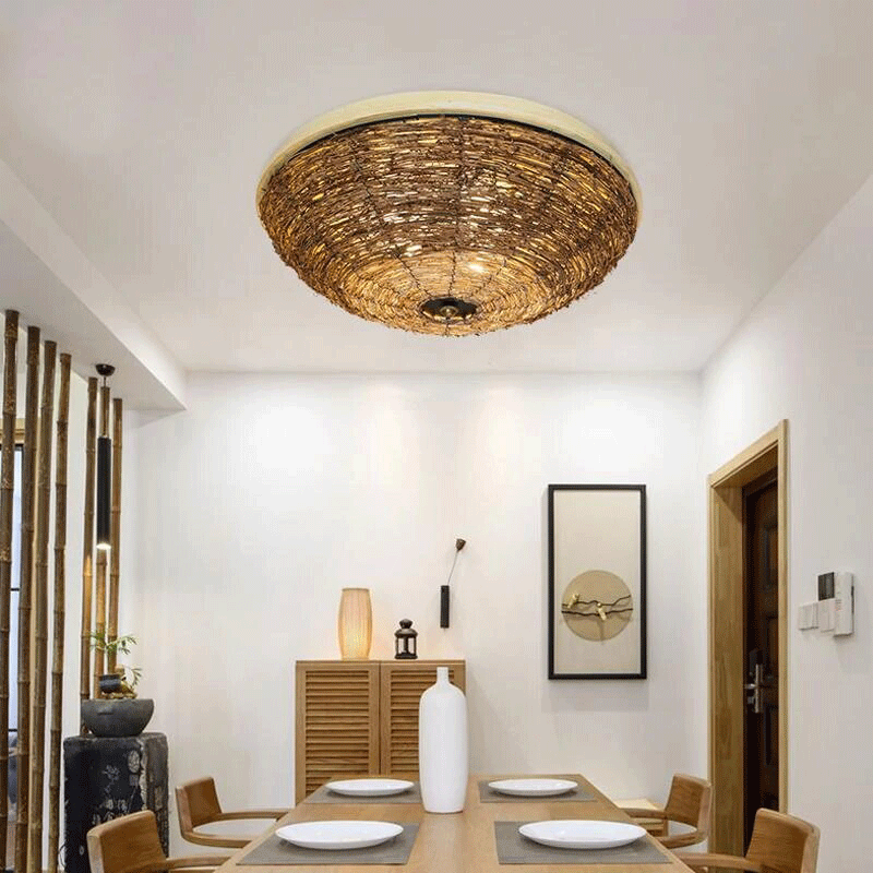 Wood Wicker Rattan Round Shade Ceiling Light By Artisan Living