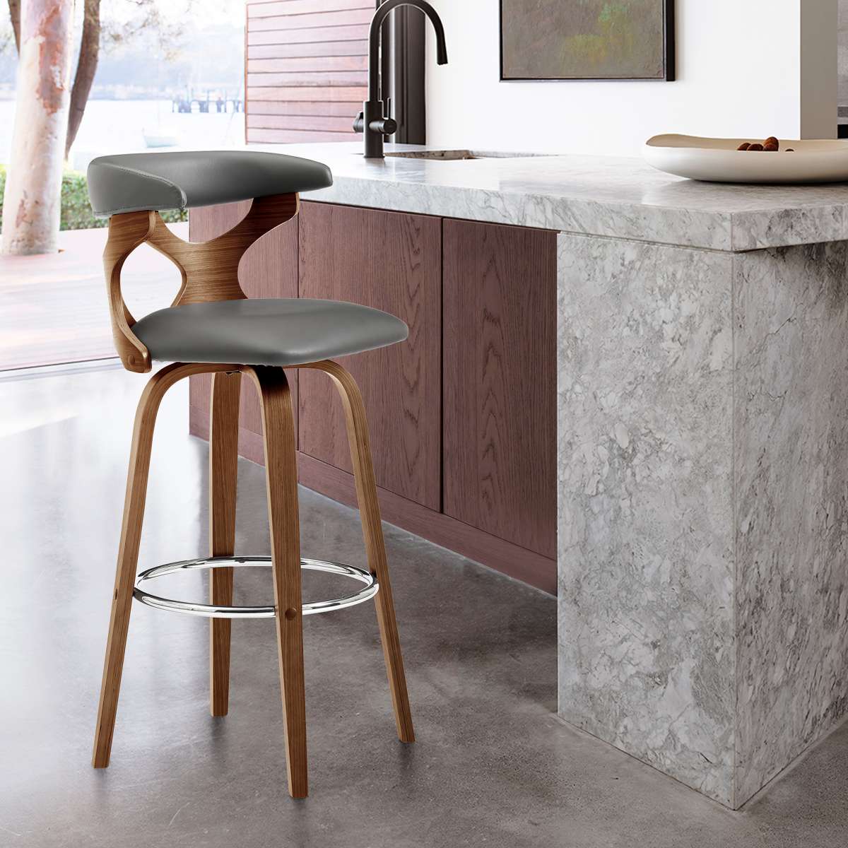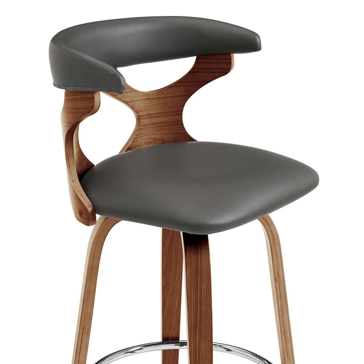 Zenia 30" Swivel Bar Stool in Gray Faux Leather and Walnut Wood By Armen Living